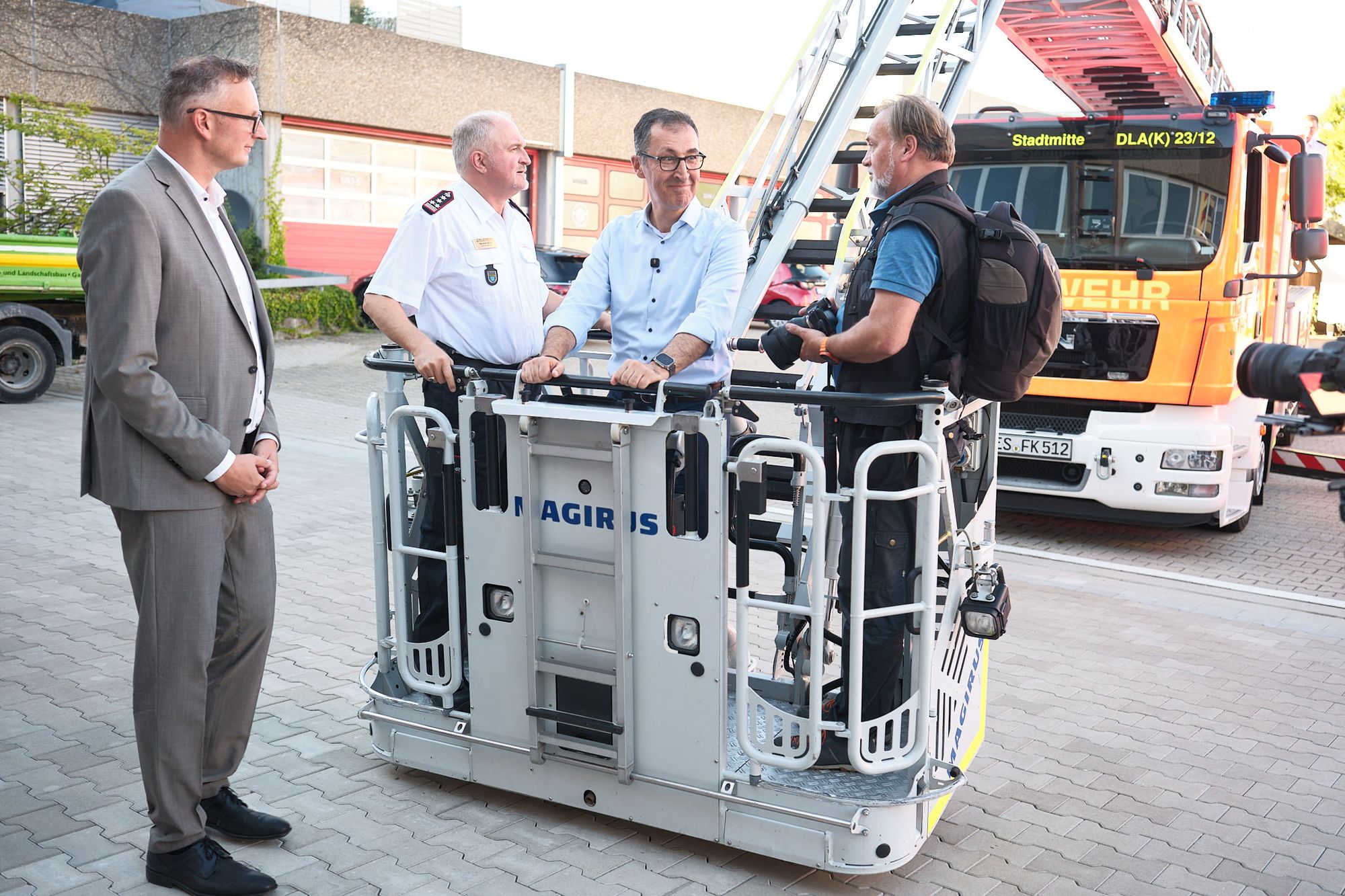 In Kirchheim unter Teck besuchte er die Freiwillige Feuerwehr. Zwischen Lösch- und Rüstfahrzeugen stellte Stadtbrandmeister Michael Briki dem Politiker gleich eine kritische Frage: warum die CDU in Umfragen derzeit vorn liege, die Grünen aber verlieren. Özdemir konterte, dass Umfragen Momentaufnahmen seien und er sich jetzt vor allem mit den Menschen austauschen wolle.