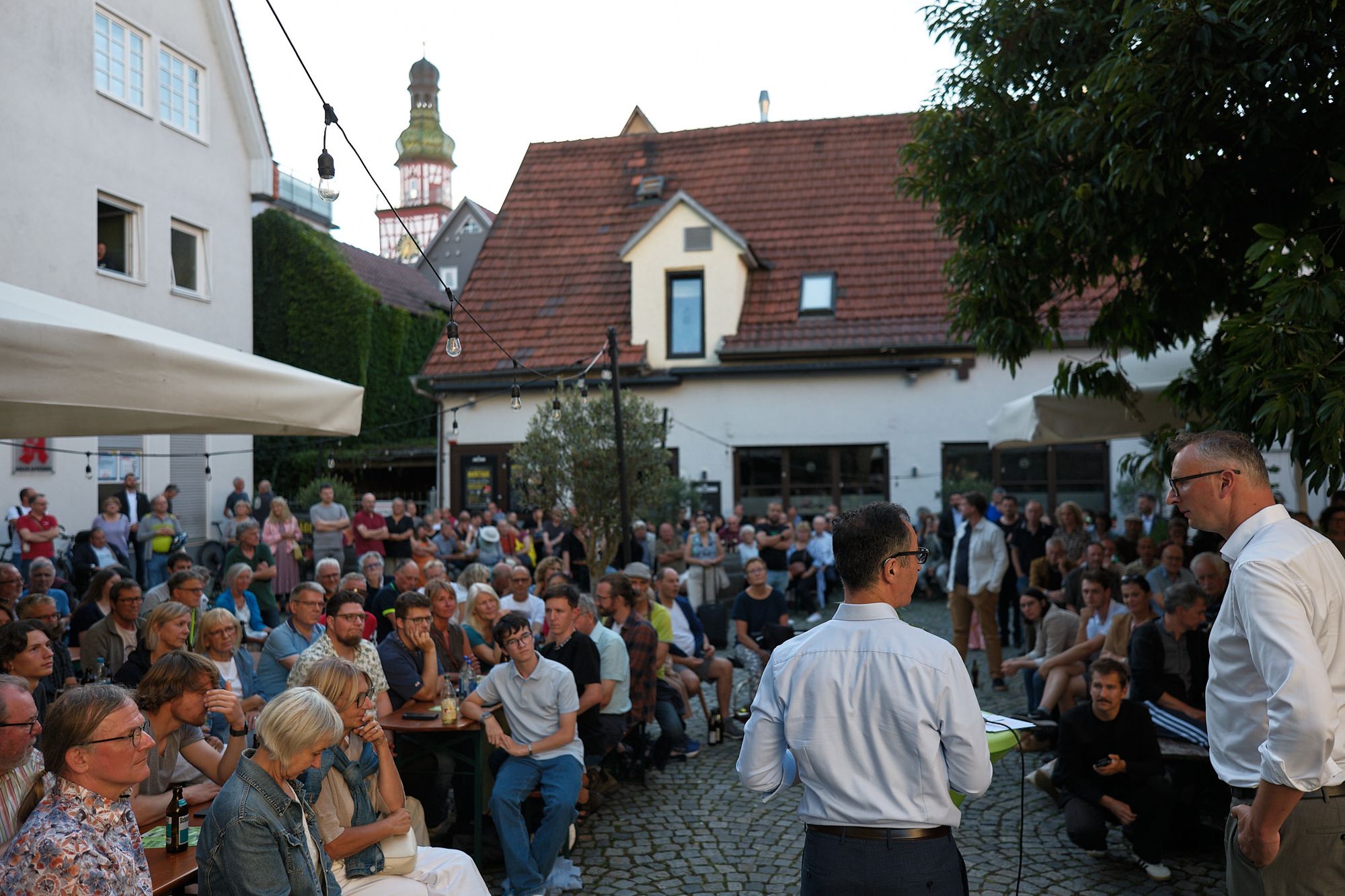 Fotos: Thomas B. JonesAm Abend folgte der Bürgerdialog „Auf ein Bier mit Özdemir“ in der Kirchheimer Stiftsscheuer, zu dem Landtagsabgeordneter Andreas Schwarz eingeladen hatte. Der Spitzenkandidat wiederholte dort seine Kernbotschaften: Er wolle über Parteigrenzen hinweg nach Lösungen suchen, weil die Menschen „Parteipolitik klassischer Art satt“ hätten. Zugleich plädierte er für verlässliche Energiepolitik, gute Bildung und dafür, gut integrierte Geflüchtete in Deutschland zu halten, während Straftäter abgeschoben werden sollen. Trotz der Ankündigung, keine Versprechungen zu machen, rutschte ihm mehrfach der Satz „wenn ich Ministerpräsident bin“ heraus. Zum Schluss wollten sogar Mitglieder der Jungen Union ein Selfie mit ihm – ein Signal, dass seine Sommertour auch außerhalb des grünen Lagers Neugier weckt.Mit seinem dichten Besuchsprogramm zeigt Özdemir, wie er Umwelt-, Wirtschafts- und Sozialthemen miteinander verknüpft und dabei den direkten Dialog sucht – eine Strategie, mit der er die Nachfolge von Ministerpräsident Winfried Kretschmann antreten will.